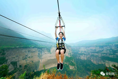 “感觉太棒了!一开始我还害怕,慢慢适应后,害怕就变为兴奋、刺激。”在景区体验过高空滑索的游客都会这样感叹。2017年4月,太行穿越高空滑索开始运营。不到1年时间,该项目已经成为游客必玩的一个项目。此项目采用无动力型直滑式单承载式滑索,依靠两端的高差,滑具载客后,靠自身重力下滑至平台,整个过程穿越太行山,飞渡大峡谷,于悬崖绝壁间翱翔。真是听听都过瘾,简直是在山间飞行。此外,夏季,太行大峡谷的漂流也是景区一大特色,在豫北地区首屈一指。漂流全长4500米,落差达到85米,真是人在水中漂,景色随山转,迎波斗浪,其乐无穷!