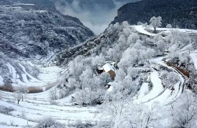 近日,太行山喜降瑞雪,将巍巍的太行山瞬间披上了银装,乘车顺着崎岖的山路盘旋而上,道路两边的树枝上挂满了洁白晶莹的霜花,山风吹拂银丝闪烁,天地白茫茫一片,犹如被尘世遗忘的仙境。