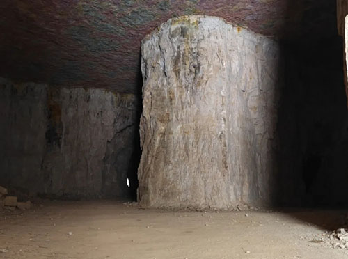 蘑菇洞不是天然洞窟,而是人工凿成山洞特别开阔,周边太行山势雄伟苍劲。洞顶与洞壁有大型机械挖掘的痕迹,平整而规则挖掘时经过了巧妙的设计,洞中留出巨石做支柱支撑,洞壁凿窗口便于空气流通,此洞与周围的一系列山洞勾连成一片,彼此相通呼应,每当冬天,洞内会形成冰蘑菇奇观。