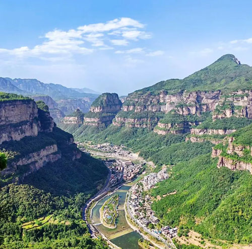 太行大峡谷,在南太行山东麓的林州市西侧,南北长100华里,东西宽2.5华里,海拔800—1739米,相对高差达1000米以上,境内断崖高起,群峰峥嵘,阳刚劲露,台壁交错,苍溪水湍,流瀑四挂,峰、峦、台、壁、峡、瀑、嶂、泉姿态万千,是“北雄风光”的典型代表!
